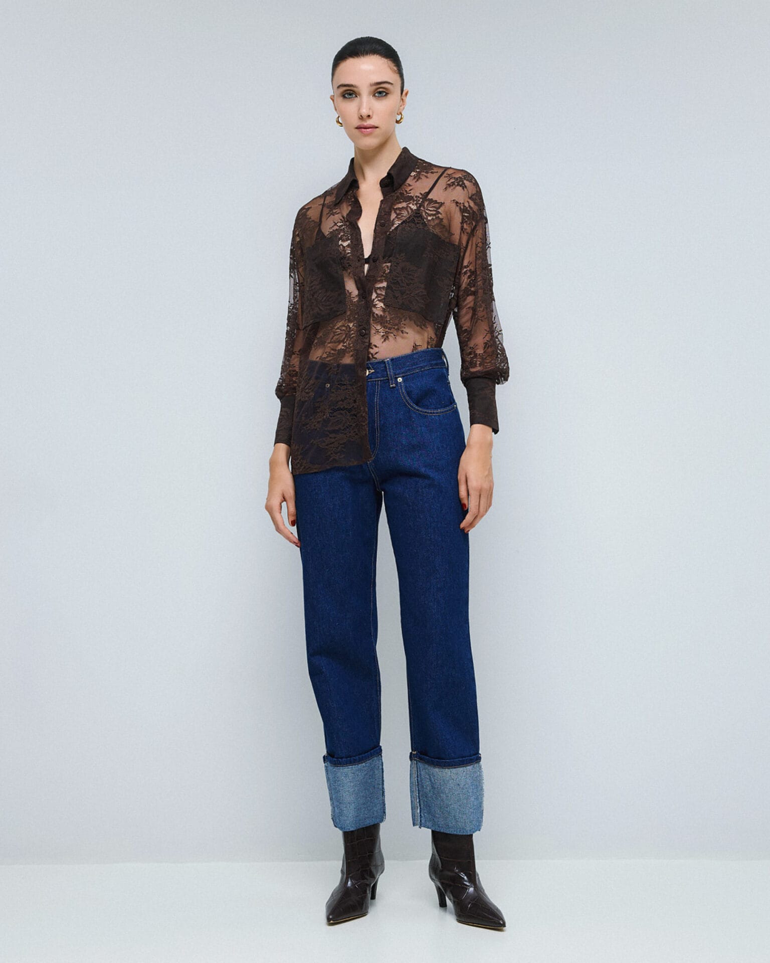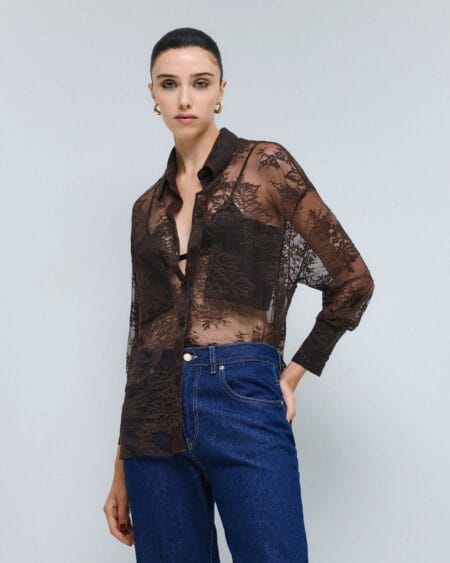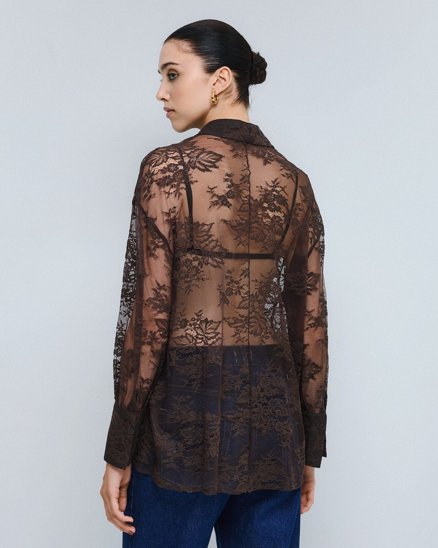 Access fashion blouse lace coffee , chique transparante kanten blouse.