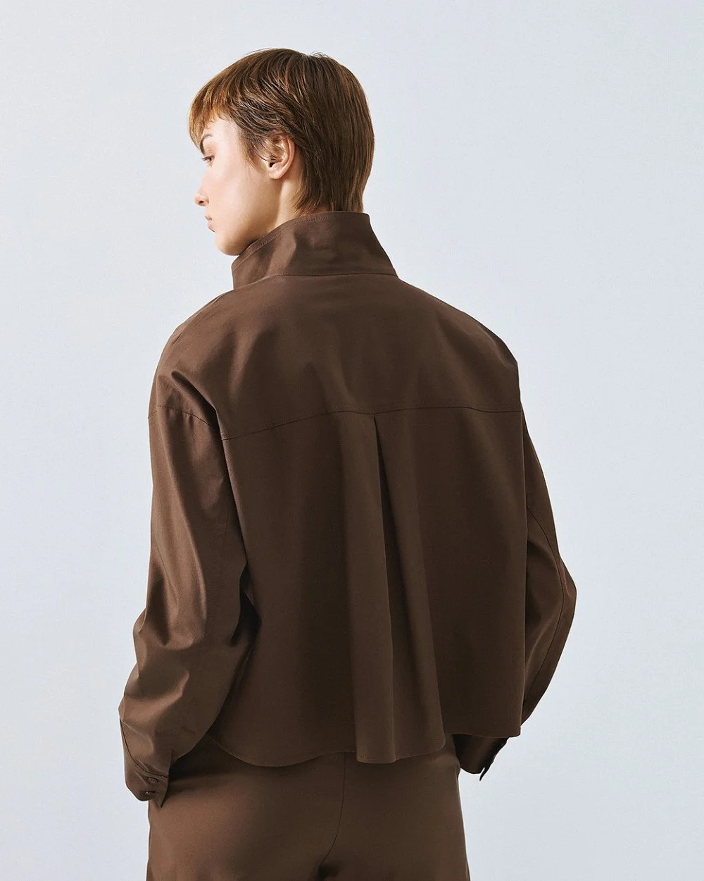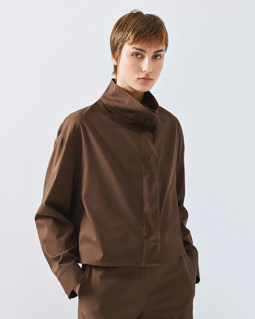 Access fashion cropped blouse coffee , kort blouse jasje combineert mooi met de wijde pantalon.