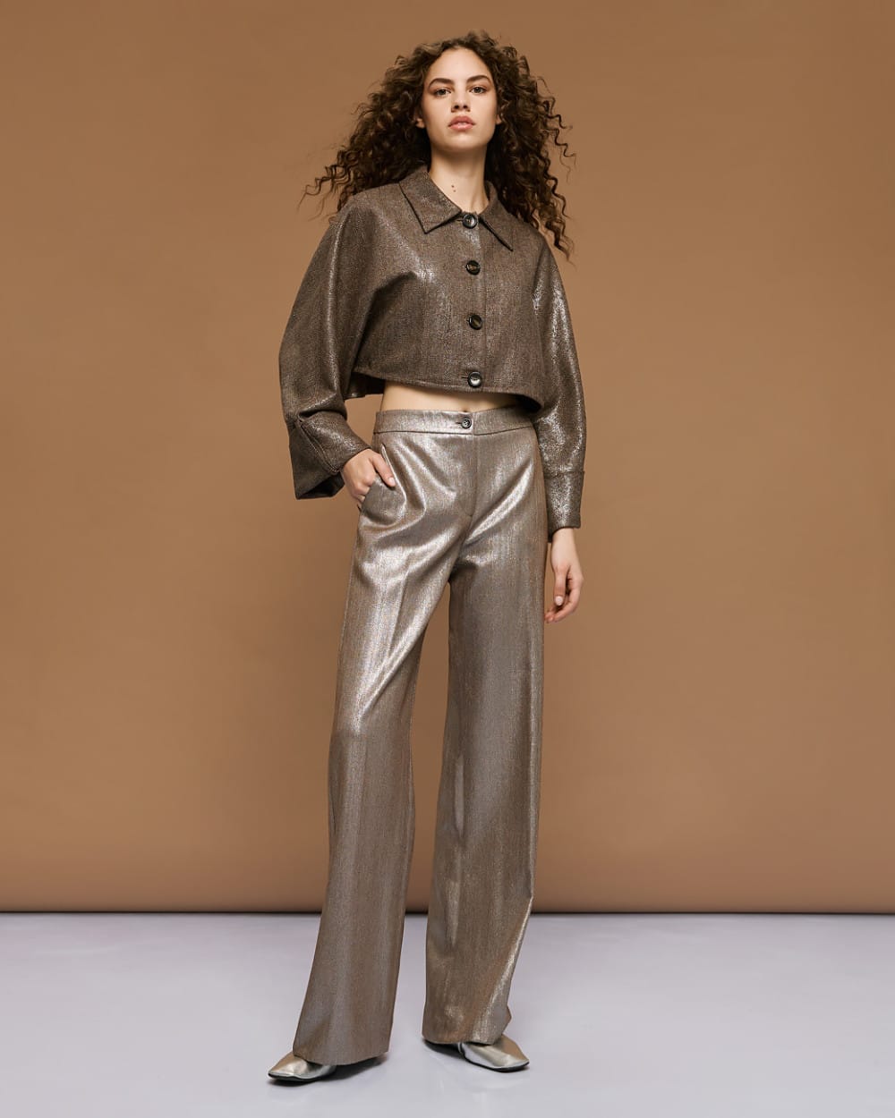 Access pantalon metallic eff grijs , chique elegant pantalon met glans.