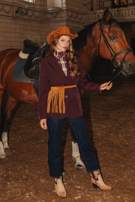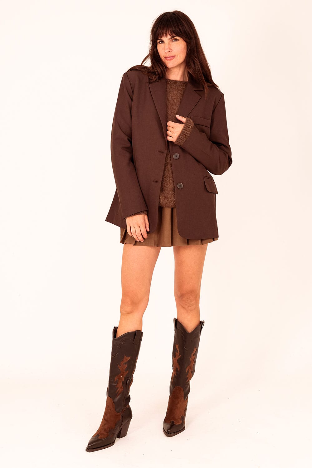 Blazer billy donker bruin oversized , los vallende blazer met paspel zakje aan de achterzijde.