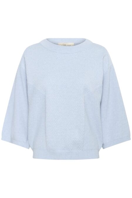 Cream trui dela licht blauw, trui is gemaakt 50% viscose , 28% polyester , 22 % nylon.