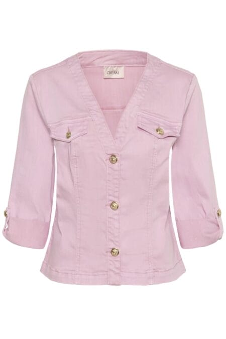 Cream visti twill jasje pink nectar , luxe twill jacket met goudkleurige knopen.