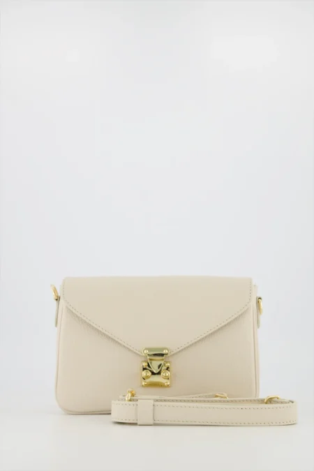 Dames schoudertas fully beige , echt lederen tas met goudkleurig slot.