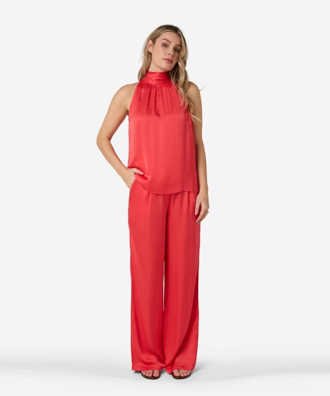 De Pasha pants in de kleur Rosa Coral heeft een elegante wijde fit en valt soepel dankzij de rayon/viscose kwaliteit. De broek is uitgevoerd met twee steekzakken en heeft een binnenbeenlengte van 84 cm, wat zorgt voor een flatterend en verlengend silhouet. De non-stretch stof geeft de pants een cleane en luxe uitstraling. Stylingtip: draag de Pasha pants met de bijpassende Tyana top voor een stijlvolle look.