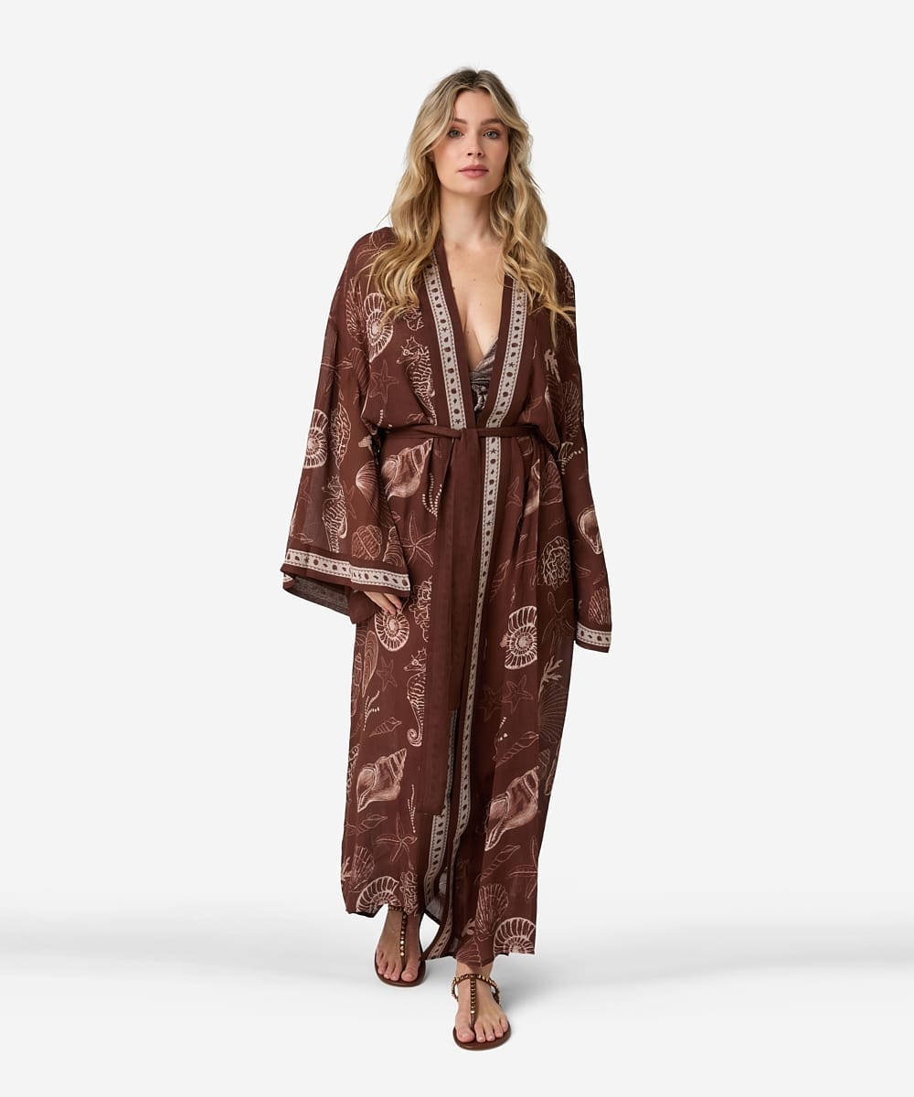 De Jimono is een luchtige en elegante kimono voor zomerse dagen. Dit non-stretch item is gemaakt van 100% viscose, heeft een wijde fit, een vrouwelijke v-hals en sluit met een cord voor een moeiteloos nonchalante look. Draag de Jimono losjes over je swimwear voor een stijlvolle laag.
