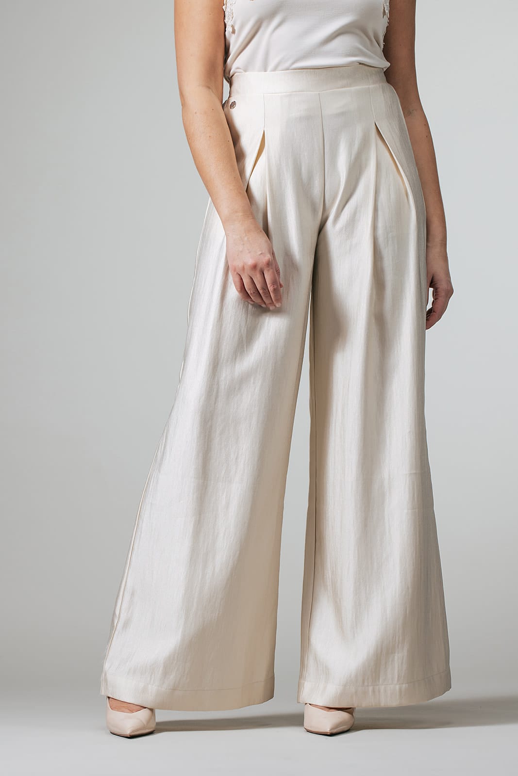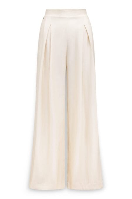 Bandplooibroek Remila is uitgevoerd in een glanzende, soepelvallende keperstof en heeft een elegante wijde fit. De bandplooien geven het model een geklede uitstraling en een elastische inzet aan de achterkant van de tailleband zorgt voor extra draagcomfort. Een sterke basis voor zowel feestelijke combinaties als meer casual styling, afhankelijk van de gelegenheid.