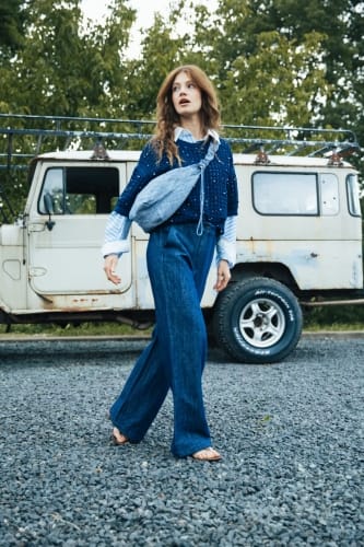 Label dot tas zaza jeans , cross-body bag past mooi bij de blauwe broek rox en top.