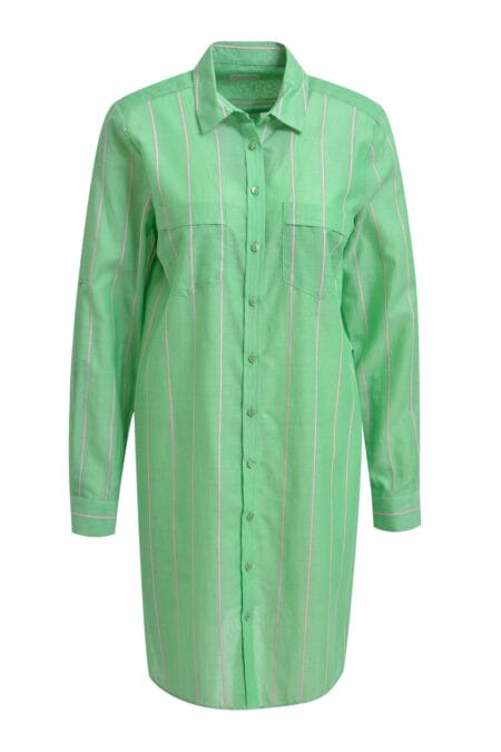 Milano italy overhemd jurk groen , blouse jurk met kraag en knoopsluiting en streep dessin.