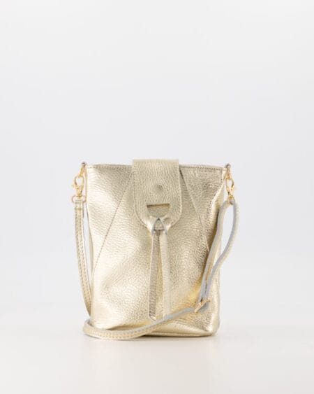 Sylvia is een elegante leren crossbody tas met goudkleurige details, een afneembare en verstelbare schouderband en een ruim hoofdvak met ritsvak. De tas sluit met een ritssluiting en magneet en heeft een stijlvolle afwerking.