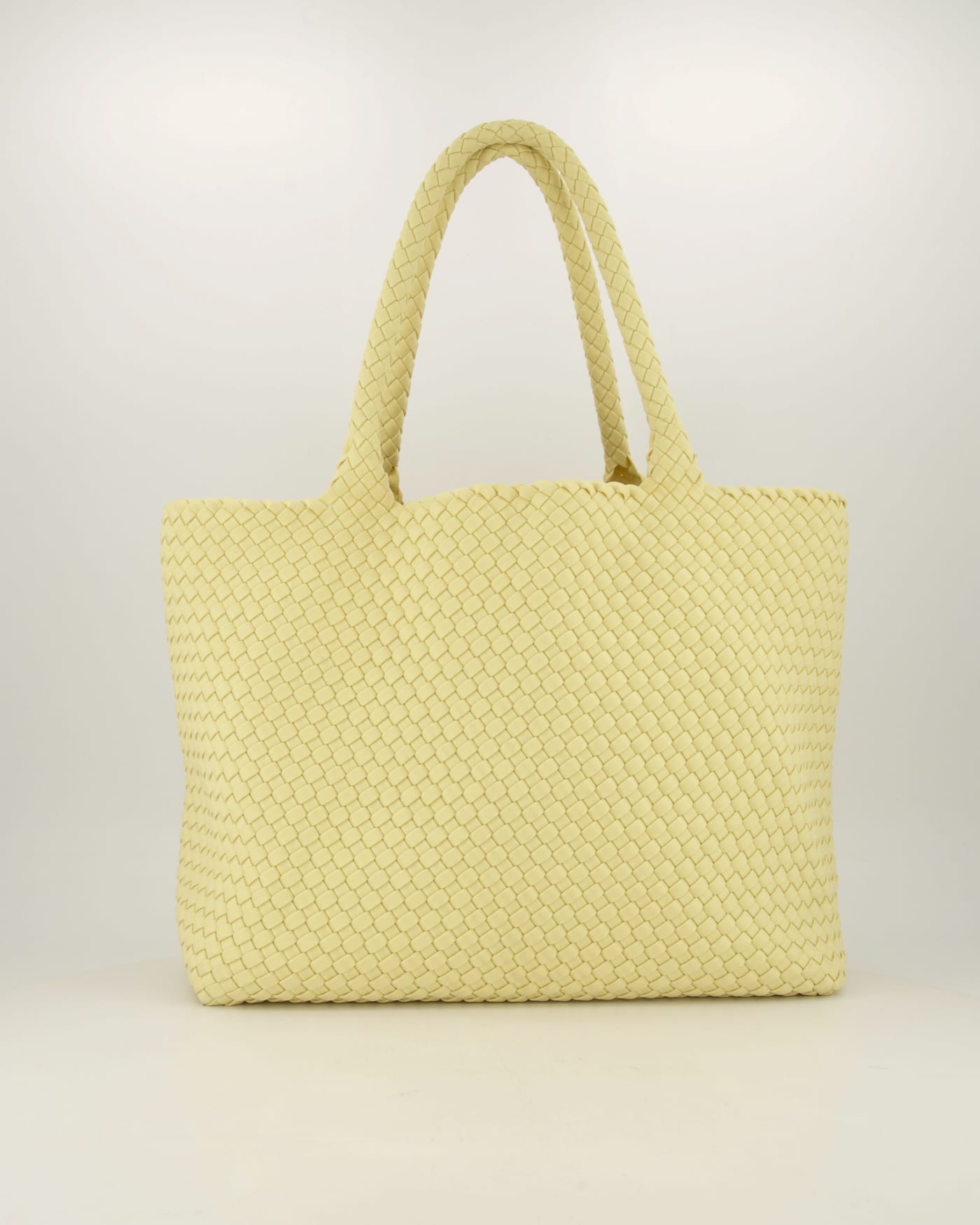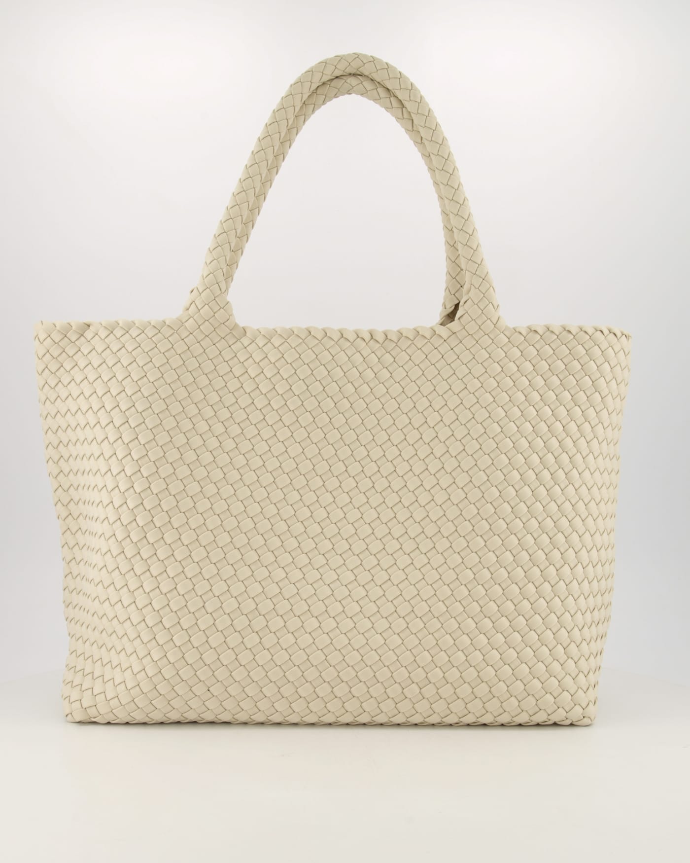Deze tas is met de hand geweven uit neopreen van hoge kwaliteit, is licht, flexibel en gemakkelijk schoon te maken, waardoor het de ideale keuze is voor reizen, stranddagen en weekendjes weg.