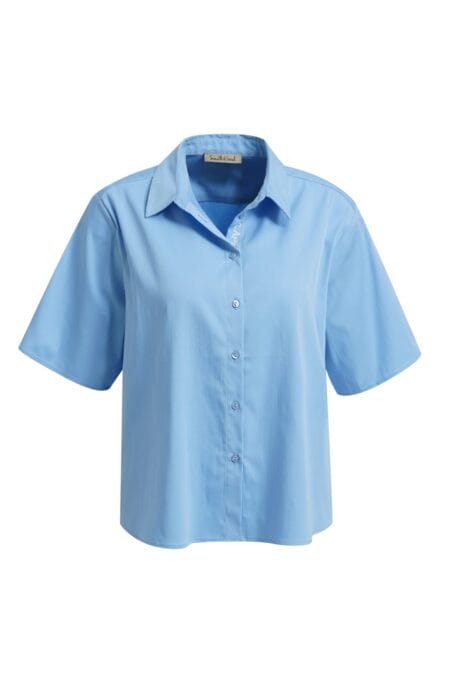 Smith & soul blouse boxy blauw , blouse met korte mouw en knoopsluiting.