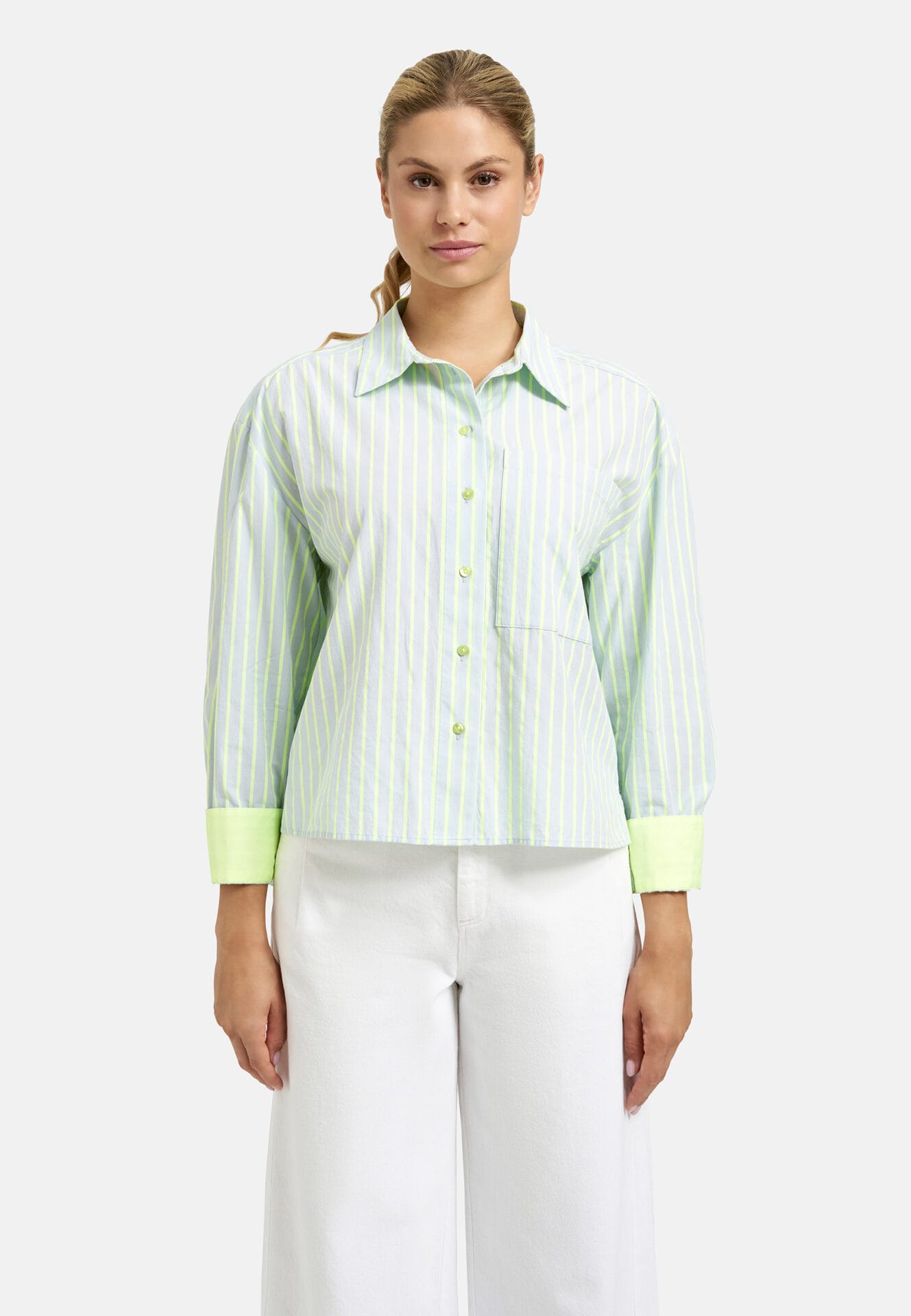 Smith & Soul blouse neon koraal streep boxy, blouse gemaakt van 100% katoen.