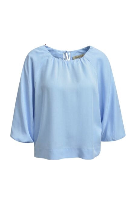Smith & soul raglan blouse sky , blouse heeft een ronde hals en sluiting met knoopje in de hals.