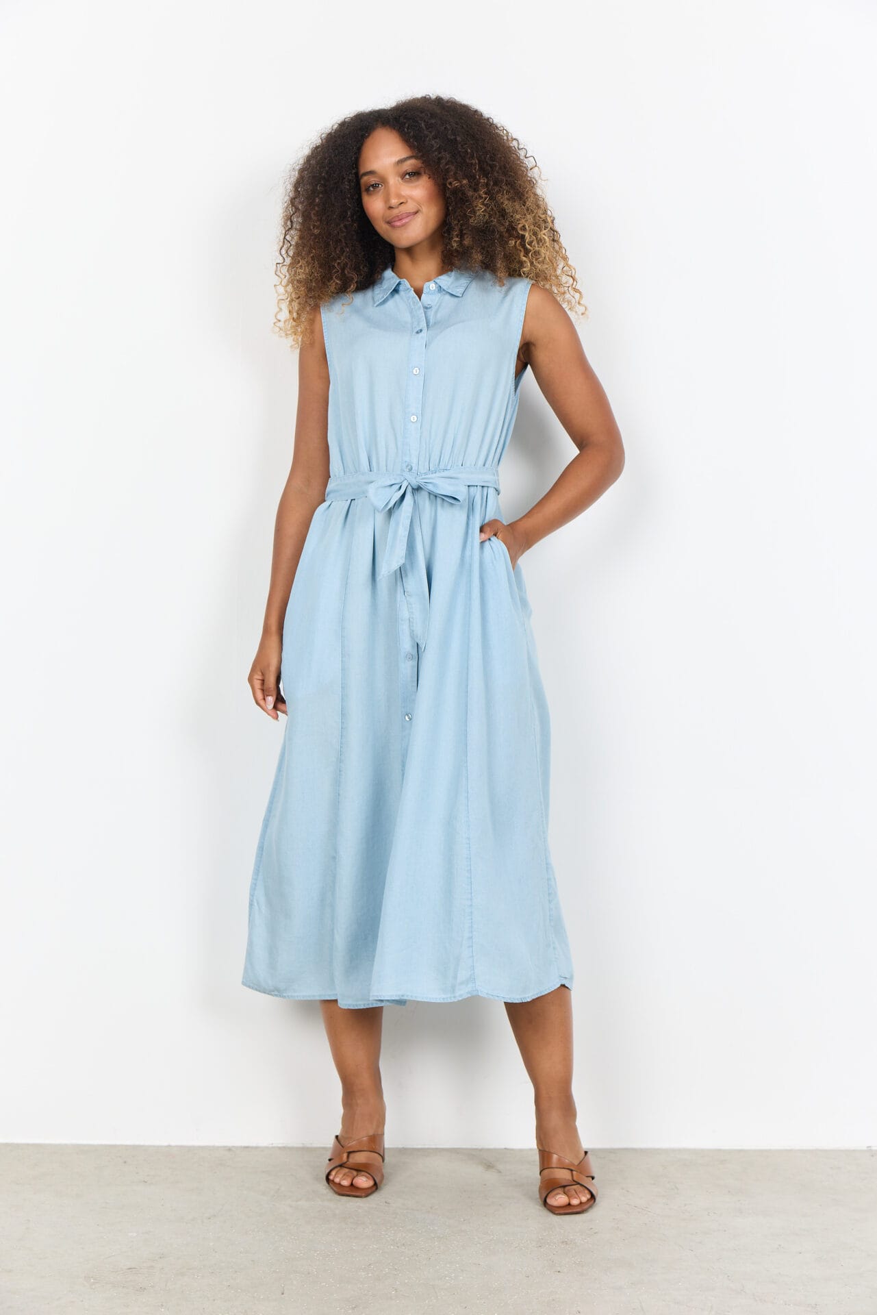 Soyaconcept jurk liv , hele soepele jeans look doorknoopjurk met kraag.