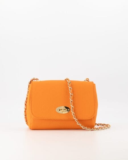 Tas molly oranje , tas heeft een gevlochten ketting met goudkleurige hardware.