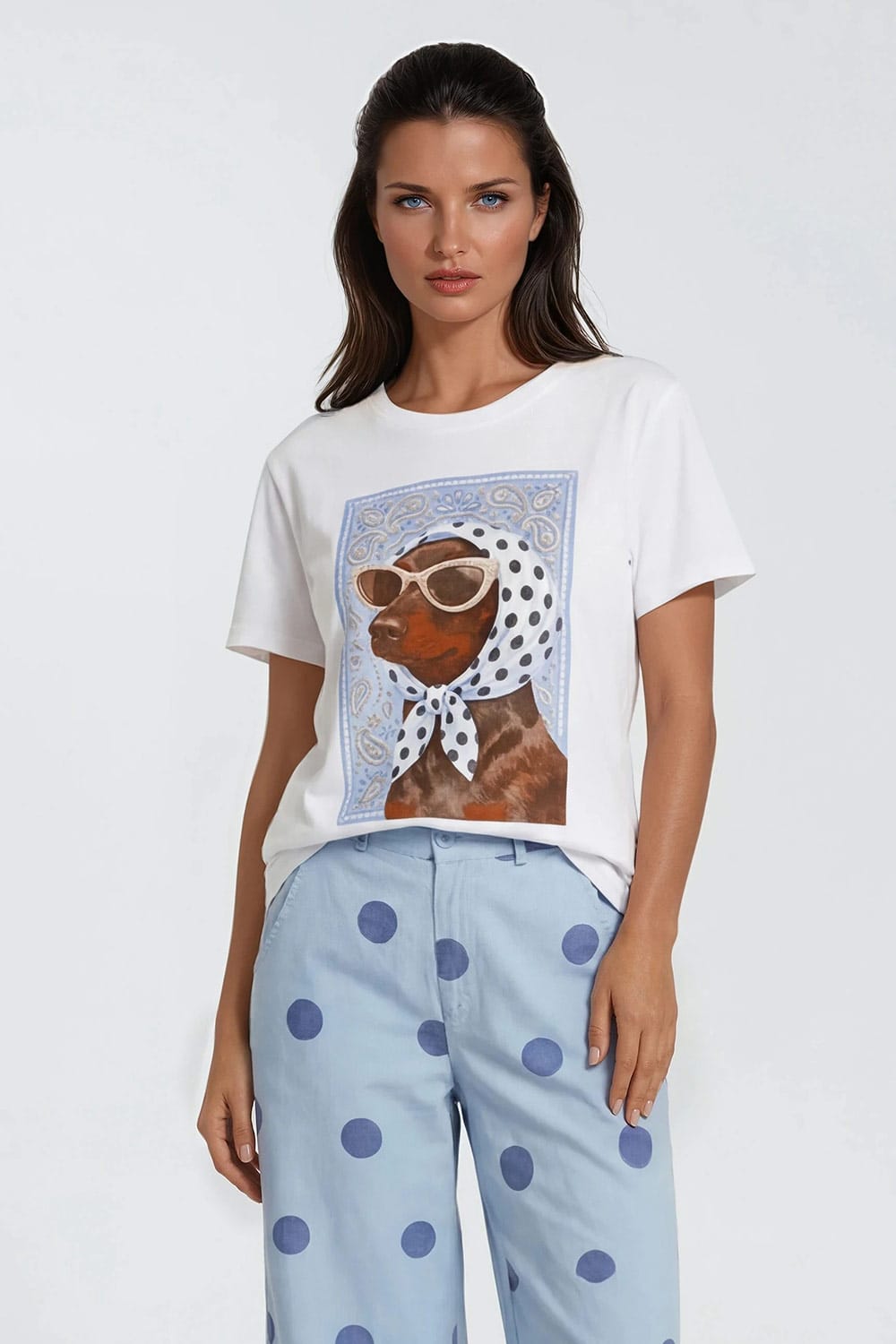 Tshirt dogs allowed ,tshirt is in licht blauw of geel.